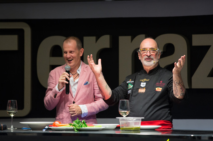 La tre giorni dedicata al Pesce dell’Alto Adriatico, prodotto tipico del territorio lignanese e organizzata da Lignano Sabbiadoro Gestioni in collaborazione con Cucinare, la fiera dedicata all’enogastronomia e alle tecnologie per la cucina di Pordenone Fiere, si è svolta dal 17 al 19 giugno scorsi nella suggestiva cornice della Terrazza a Mare di Lignano Sabbiadoro e si è aperta con una performance culinaria a quattro mani di Fabrizio Nonis e di Andy Luotto. Come non ricordare L’altra domenica o Quelli della notte che hanno tenuto intere generazioni incollate allo schermo televisivo fino a notte fonda? Erano gli anni Ottanta e nella compagnia di Renzo Arbore c’era anche lui. Andy Luotto, vero nome André Paul Luotto, nato a New York, laureato alla Boston University in Comunicazione e Sociologia, e scoperto proprio da Renzo Arbore per caso in un mercatino rionale. Pochi, invece, forse sanno che il primo vero amore di Andy Luotto è stata la cucina. Un amore cui è tornato, coronandolo definitivamente nel 2011 con un libro, il ricettario in chiave ironica e divertente: Faccia da chef. E quest’anno con l’apertura della Luotto Factory e del Ristorante Là, nella centralissima Piazza Venezia a Roma.