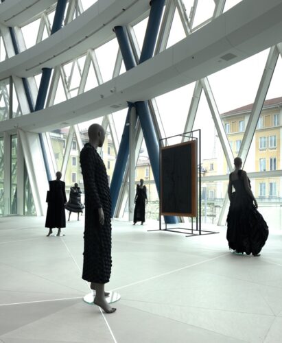 Dal 16 aprile al 5 maggio 2026, CUBO Museo d’Impresa del Gruppo Unipol ospita nella Unipol Tower di Milano il progetto espositivo “Abitare il Nero. Da Alberto Burri ai Fashion Designer della Scuola giapponese” nel quale il capolavoro Nero con punti di Alberto Burri, appartenente al Patrimonio Artistico di Unipol, è posto in dialogo con cinque straordinarie creazioni di Issey Miyake,Yohji Yamamoto e Junya Watanabe, tra i più radicali designer giapponesi contemporanei.