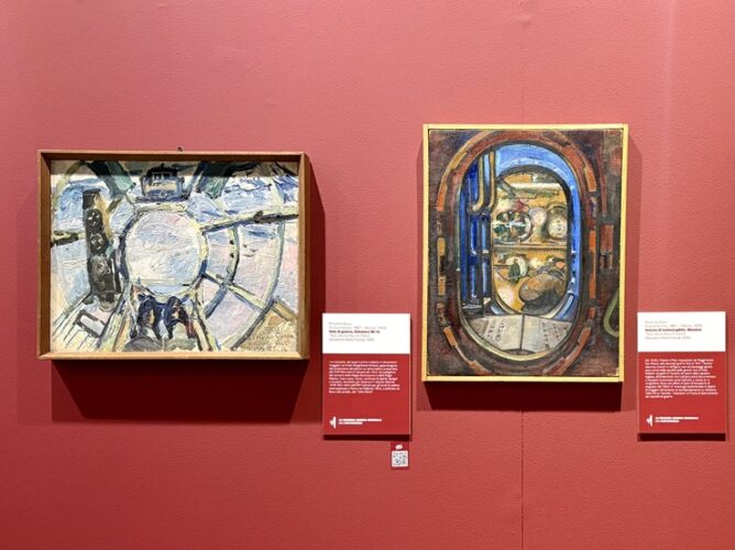 In esposizione anche due tele che si avvicinano decisamente al Futurismo al quale però Bucci non aderirà mai, Volo di guerra, Bimotore RS 14 e Interno di sommergibile, Messina, entrambe del 1942.