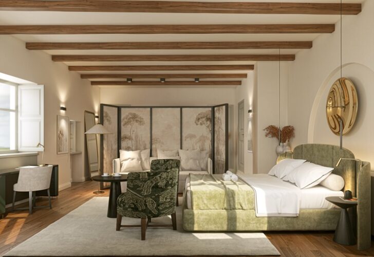 L’Hotel, che accoglierà i primi ospiti a luglio di quest’ anno, si compone di 25 camere e suite ricavate dal monastero e dalla villa adiacente. Ogni camera mantiene la suddivisione della struttura a celle monastiche, mentre le suite, tra cui l’antico alloggio del Priore, sono pensati come piccoli appartamenti.