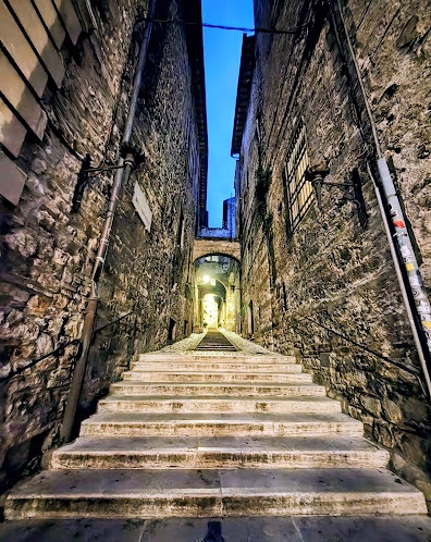 Il gran finale è affidato a Perugia, città elegante, stratificata e sorprendente. L’ingresso è scenografico, attraverso le viscere della Rocca Paolina, con le scale mobili che fendono la pietra in una simbolica ascesa verso la luce. L’antico forte papale è oggi un centro espositivo che custodisce storia e opere d’arte.