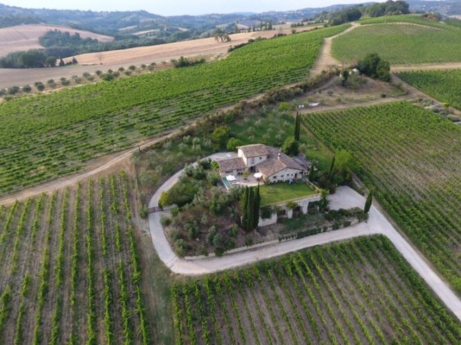 Santo Iolo è la dimostrazione che l’enoturismo può raggiungere vette poetiche. Qui il vino, l’ospitalità e il paesaggio si fondono in un’esperienza unica. La cantina si adagia su una collina, di fronte al casale ottocentesco, con un’architettura essenziale di tre archi di pietra che proteggono i vini. La vera magia è nel sottosuolo: un terreno geologicamente unico, dove il mare del Pliocene ha lasciato in eredità conchiglie e minerali. Questa storia millenaria si traduce in rossi, bianchi e spumanti Metodo Classico di straordinaria mineralità. Il casale stesso è un gioiello, un mix di design e antiquariato, circondato da un giardino all’inglese dove persino asini e galline di razza partecipano all’immersione sensoriale, offrendo agli ospiti un soggiorno indimenticabile immersi nella natura e nel gusto.