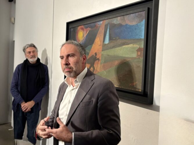 Dal 9 novembre al 21 dicembre 2025 alla LeoGalleries, in via de Gradi a Monza, “Cesare Andreoni futurista”. L’inaugurazione è stata occasione per una lezione magistrale improvvisata da parte dei curatori Massimo Duranti e Andrea Baffoni. Una mostra da non perdere