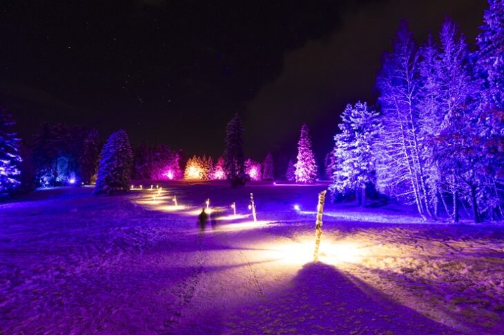 Poi c’è la notte, che qui, tra le nuvole, ha un volto diverso. È quello fatato del Sentiero delle Lanterne, un itinerario notturno immerso nella luce: 180 lanterne, installazioni artistiche, esperienze interattive e musica e installazioni che accompagnano il percorso tra boschi e pendii. Fino all’8 marzo 2026 il tema sarà l’immaginazione e il sogno — un invito a camminare, letteralmente, dentro la magia dell’inverno.