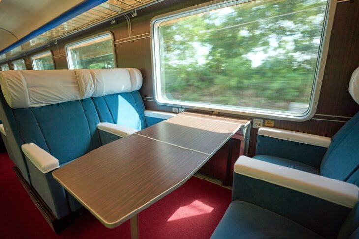 Il treno è composto dalle iconiche carrozze di prima classe Gran Confort, restaurate con cura dalla Fondazione FS. Veri e propri salotti viaggianti, simbolo dei viaggi degli anni Settanta, oggi tornano a nuova vita per accompagnare i viaggiatori in un percorso che unisce memoria, comfort ed emozione.