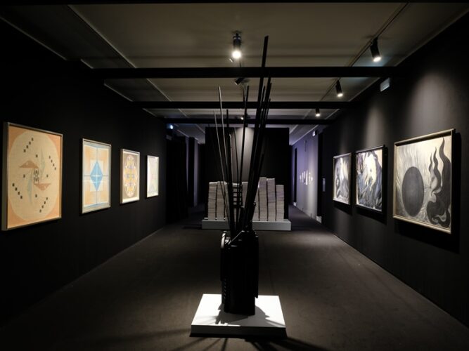 Attraverso più di duecento opere tra dipinti, fotografie, film, documenti, disegni, sculture e oggetti rituali, la rassegna compone una costellazione di settantotto figure – medium, mistiche, visionarie, artiste e artisti contemporanei – che hanno tentato di aprire varchi tra il mondo terreno e dimensioni invisibili. L’esposizione indaga le contaminazioni tra arti visive e misticismo, fenomeni paranormali, spiritismo, esoterismo, teosofia e pratiche simboliche, mostrando come ricerche considerate eccentriche o marginali abbiano avuto la forza di scardinare convenzioni consolidate, ridefinendo il ruolo dell’arte nella società.