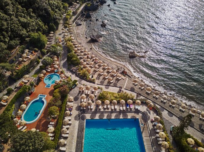Giardini Poseidon Terme è il più grande parco termale dell’isola d’Ischia: acque termali altamente curative alimentano oltre venti piscine immerse nel verde, con temperature che variano da 28° C a 40° C, tre piscine con acqua di mare, una grotta di vapore termale secondo la tradizione greco-romana scavata nel tufo, tre gruppi “Kneipp” (bagni alternati 40° C/15° C) di effetto circolatorio e un cammino di esercizio vascolare degli arti inferiori. Un luogo idilliaco dove trascorrere momenti di relax e benessere, rigenerandosi e dedicando una coccola a se stessi. Peculiare caratteristica è il connubio perfetto tra i benefici delle terme associati alla bellezza della location, tra la natura rigogliosa e verdeggiante e le splendide acque della baia di Citara: un aspetto che è possibile ritrovare solo sulla famosa isola verde, assolutamente da non perdere.
