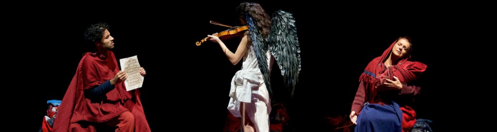 Una storia di migrazioni, partenze e arrivi, di dolori e strazi, di spostamenti e viaggi “disumani” appunto, imprese impossibili, al limite tra la vita e la morte, all’insegna della disperazione e della speranza. E la scenografia, disegnata dallo stilista Antonio Marras ben riflette questo senso della distruzione, dell’annientamento umano, fisico e psicologico. Fondale e pavimento color rosso sangue, sono il risultato di cumuli ed accumuli di abiti incastrati, intessuti, stratificati, incrostati, assemblati e sovrapposti. Come queste orde di popoli in fuga. I resti scomposti e consumati di qualcosa di indefinito.