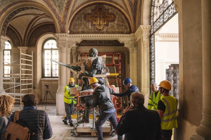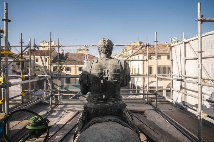 Dopo tre anni di ponteggi e studi preliminari, il monumento è stato sollevato e calato a terra per consentire ulteriori accertamenti prima dell’intervento conservativo. Il restauro è reso possibile grazie al sostegno delle organizzazioni americane Friends of Florence e Save Venice, che hanno già garantito il loro contributo anche per la fase operativa. Le analisi condotte finora hanno evidenziato la necessità di intervenire con tecniche avanzate per preservare l’integrità del bronzo e del basamento in pietra.
