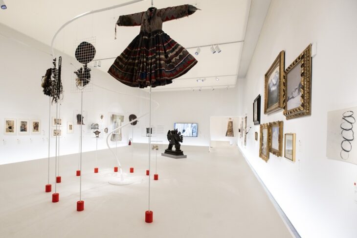 L’allestimento, a cura di Studio GRACE e con progetto grafico di studio FM, si articola in tre grandi aree tematiche, dove manufatti etnografici, pittura antica e opere d’arte contemporanea dialogano in accostamenti inediti.