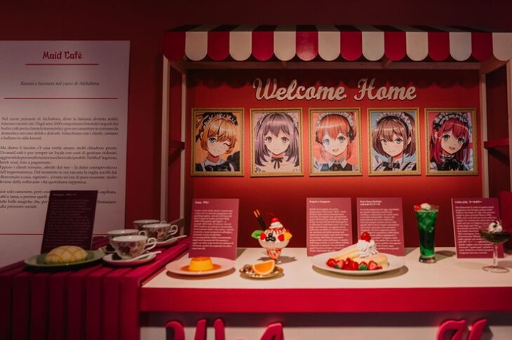 La sala ricrea l’esperienza di un autentico café giapponese, ispirato a locali iconici come i Maid Cafè, Butler Cafè e Neko Cafè, ma anche a spazi dedicati a colori, animali o eventi temporanei.