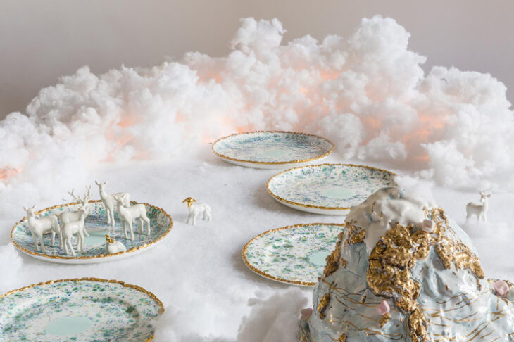 “Ogni oggetto, anche il più semplice e immediato, a cui lavoro è la rappresentazione del mio mondo interiore. I decori su piatti e complementi esprimono il ritmo della vita, raccontano la terra vista dal cielo e le nuvole viste dal mare. Uso il colore, l’argento e l’oro come fossero parole magiche, con cui descrivere e declinare i miei sentimenti. Il linguaggio che amo usare è basato su un’estetica primaria e preziosa, come un diamante grezzo luccica sulla terra nera”. Coralla Maiuri