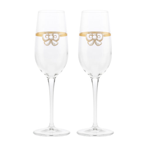 Ma che cena sarebbe senza un bel brindisi? Gold Icons propone una serie di bicchieri realizzati in un vetro di alta qualità, prodotto in Italia, che garantisce brillantezza e resistenza, compresi i flûte decorati da un fiocco d’oro.