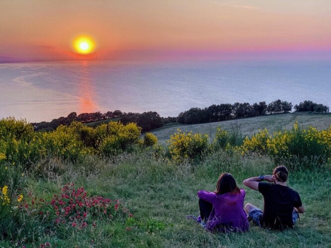 Il tour inizia dal mare di Gabicce, una terra di confine, un lembo di terra dove coesistono due nature: il mare trasparente dell’Adriatico e le stupende falesie del colle del San Bartolo.
