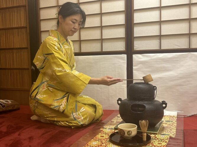 La cerimonia del tè ha un valore particolarmente rilevante nella cultura giapponese: una tradizione senza tempo, che consente di immergersi totalmente in un mondo così affascinante e ricco di bellezza e spiritualità. Kotolily Kyoto, location a pochi passi da Nishiko Market, nel cuore di Kyoto, offre una ricca esperienza musicale attraverso il tradizionale strumento giapponese, il koto, per poi accostarsi al rituale della preparazione del tè.
