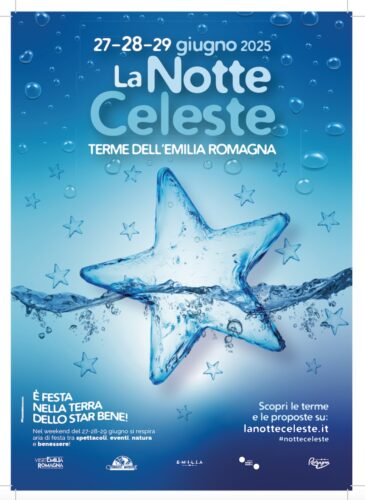 Attesa per la tredicesima edizione della Notte Celeste, la grande festa corale delle Terme dell’Emilia-Romagna, il più importante appuntamento dell’anno dedicato al benessere: appuntamento per il week-end del 27-29 giugno, momento in cui la manifestazione si svolgerà in contemporanea nei centri termali da Salsomaggiore Terme a Riccione.
