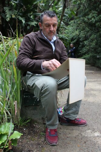 He querido “narrar” escenas relativas al concepto de Jardín, de un Edén… por ejemplo hay un tríptico que narra la expulsión de Adán y Eva del Paraíso, un díptico sobre Adán y Eva en un jardín muy conocido de Málaga.