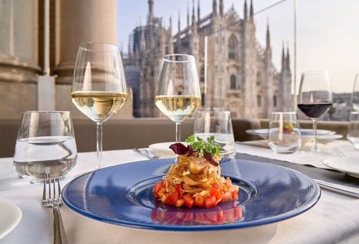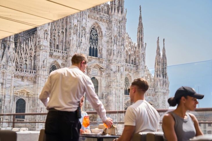 Per chi cerca una pausa dal ritmo frenetico del Salone del Mobile, la Terrazza è il luogo ideale dove concedersi un light lunch, un aperitivo o un cocktail serale. La qualità e l’eleganza sono i fili conduttori di ogni servizio, con una proposta di cocktail d’autore e una cucina caratterizzata da uno stile fashion e dinamico. La posizione della location è il suo vero punto di forza: la vista privilegiata su Piazza del Duomo arricchisce l’esperienza, rendendo ogni momento esclusivo e immerso in un’atmosfera unica che unisce design e lifestyle.