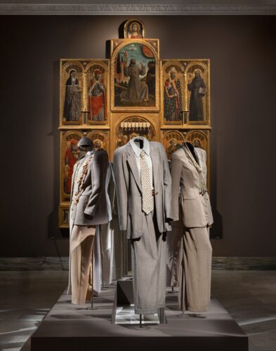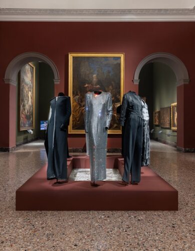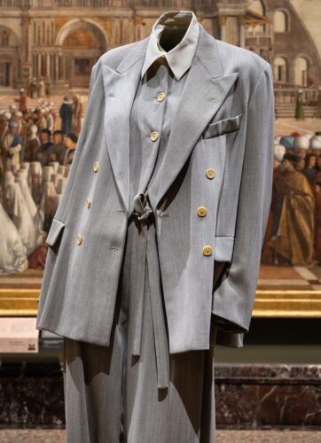 Storia pittorica e storia della moda invitano il visitatore a lasciarsi sorprendere da contrasti cromatici e materici. La selezione proviene da ARMANI/Archivio, che preserva e valorizza la visione di Giorgio Armani: un dizionario concettuale che racconta e definisce cinquant’anni di creatività, coerenza ed evoluzione, evidenziando il ruolo della moda nella costruzione e nella trasformazione degli immaginari estetici e culturali.