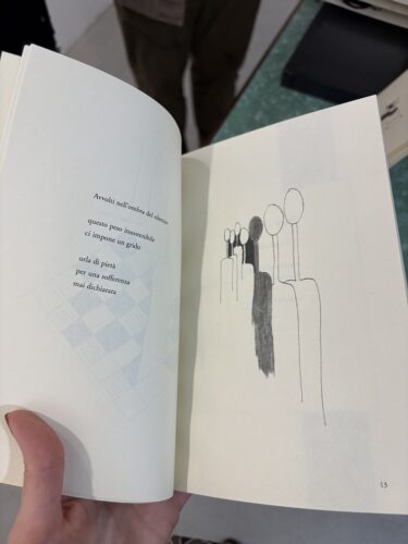 “Tra l’altro come artista visivo io considero il libro come oggetto, che chiede e richiede una relazione proprio fisica con chi lo fa ma soprattutto con chi ne fruisce. La pagina, il libro da sfogliare chiede un coinvolgimento. I libri chiedono cura ma danno cura”.
