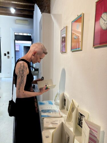 Abbiamo anche chi lavora con tirabozze, torchi e caratteri mobili; Paolo Cabrini, i quaderni di Orfeo; i libri come territori da esplorare; i racconti di viaggio come quelli di Anna Giuntini, i quaderni di appunti di Arianna Scubla, i libri d’artista di Pasquini, i diari di Serena Giorgi“.