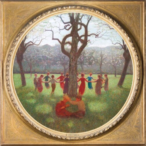 Sopra, Giuseppe Pellizza da Volpedo. Idillio campestre (Il girotondo) 1906 ca, copyright Comune di MIlano, GAM,