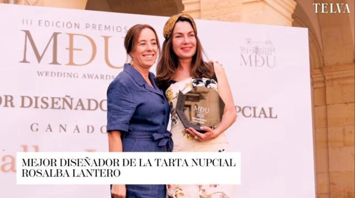 Rosalba Lantero recibiendo en premio TELVA al mejor diseñador de tarta nupcial de manos de Cristina Larraondo.