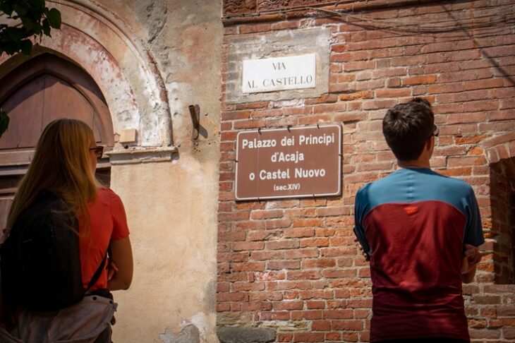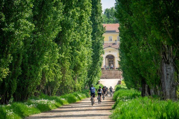 La tratta di 26 chilometri che collega Pinerolo a Pancalieri è un inno alla luce della pianura. Pinerolo, storica sede della Scuola di Cavalleria, conserva un fascino austero tra i portici medievali e il Duomo di San Donato. Pedalando verso la “capitale della menta”, si attraversa Vigone, dove il Parco di Villa d’Agliè offre angoli di pace assoluta.