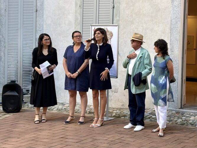 Da sinistra, Milena Pannitteri (direttrice Musei Civici), Simona Bartolena (curatrice), Irene Zappalà (assessore parco e giardini), Ugo La Pietra (l’artista), Simona Cesana (curatrice).