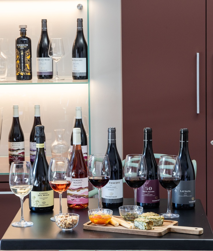 La gamma è ampia: dai vini del territorio (Albarossa, Grignolino, Ruchè, Nebbiolo, Freisa, Bonarda, Arneis), ai varietali quotidiani con ottimo rapporto qualità-prezzo, fino agli spumanti Cellino, Alta Langa e Castel Mago. Non mancano un elegante rosé, “I Tre Vescovi”, i vini dolci come Moscato d’Asti Valamasca e Brachetto Nivasto, e la “Linea del Presidente” con grappe, gin e vermouth.