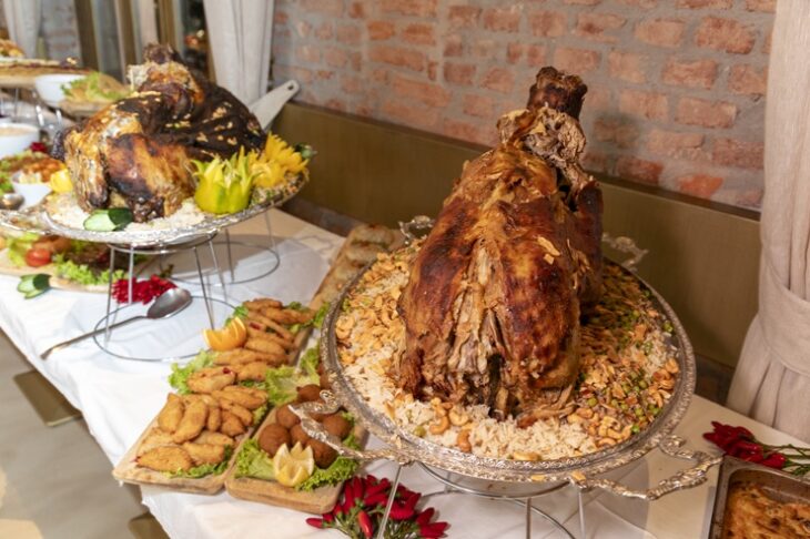 Ma il vero protagonista è senza dubbio il mansaf, lo stinco di agnello, simbolo indiscusso della cucina giordana e orgoglioso Patrimonio Immateriale dell’Umanità UNESCO. Un piatto da non perdere. Accanto a esso, gli shish kebab di manzo o pollo, la spalla di agnello arrosto con riso e, per le grandi occasioni (su prenotazione), l’agnello intero ripieno, pensato per 6-8 persone. Non mancano opzioni per gli amanti della cucina vegetariana, con zuppe (chorba), piatti a base di legumi, verdure fresche e una varietà di insalate e meze. I menu degustazione sono proposti a prezzi che variano tra 30 e 45 euro, mentre antipasti e grigliate si attestano rispettivamente tra 5 e 15 euro e tra 15 e 35 euro, rendendo l’esperienza accessibile.