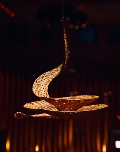 Nonostante questo, il ricco patrimonio artigianale del Karakalpakstan ha continuato a prosperare attraverso tradizioni tramandate di generazione in generazione, che conservano un valore al tempo stesso pratico e simbolico. In preparazione della mostra, Yantrasast ha viaggiato attraverso l’Uzbekistan, visitando istituzioni culturali e incontrando artigiani, al fine di sviluppare una visione che celebrasse la creatività del Paese. Ha scelto, quindi, di concentrarsi su tre mestieri tipici della zona — la panificazione, la costruzione di yurte e la tessitura di nappe — esempi di come i bisogni umani fondamentali, quali il cibo, l’abitare e l’abbigliamento, siano stati storicamente soddisfatti attraverso l’ingegno, i materiali locali e il sapere intergenerazionale.